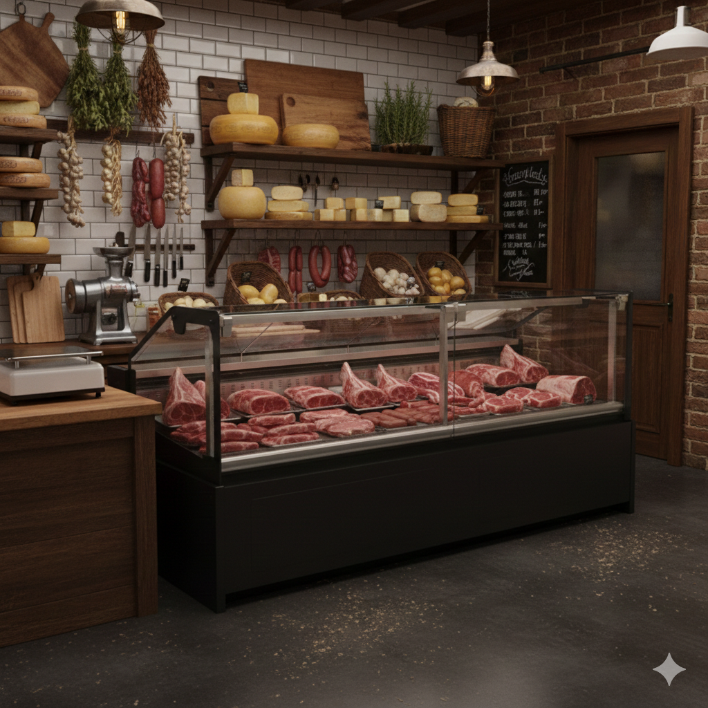 Soğutek NovaLine, modern marketler, zincir mağazalar, kasaplar ve şarküteri reyonları için özel olarak tasarlanmış yüksek performanslı bir endüstriyel soğutma reyon dolabıdır. Şık siyah gövde tasarımı ve geniş cam vitrini sayesinde ürünlerinizi maksimum görünürlükle sergilerken, güçlü soğutma sistemi ile ideal muhafaza koşullarını sağlar.
